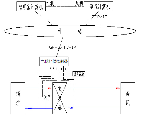 對于純住戶小區,只需要在換熱器處安裝氣候補償控制器,根據室外溫度變化調節一次側熱水流量,從而控制二次水供水溫度即可。
